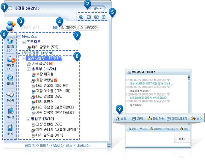 ¸Þ½ÅÀú ±â´É ¹öư : äÆÃÇϱâ, ¸ÞÀϺ¸³»±â, ÂÊÁöº¸³»±â, ¹®ÀÚº¸³»±â µîÀÇ ±â´ÉÀ¸·Î »ó´ë¹æÀ» ¼±ÅÃÇÑ ÈÄ ½ÇÇàÇÕ´Ï´Ù |
