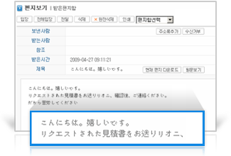 À¥±â¹Ý ¾÷¹« ÂÊÁö ±â´ÉÀ» Á¦°øÇÕ´Ï´Ù. ¸Þ½ÅÀú·Î ¹ÞÀº ÂÊÁöµµ À¥À¸·Î ÅëÇÕ°ü¸® µÇ¾î, ÀÎÅͳÝÀÌ µÇ´Â °÷ÀÌ¸é ¾îµð¼³ª ¹ÞÀº ÂÊÁö¸¦ È®ÀÎÇÏ½Ç ¼ö ÀÖ½À´Ï´Ù. ¸Þ½ÅÀú¸¦ ¼³Ä¡ÇÏÁö ¾Ê¾Æµµ À¥¿¡¼µµ µ¿ÀÏÇÑ ÂÊÁö±â´ÉÀ» ±×´ë·Î ÀÌ¿ëÇÏ½Ç ¼ö ÀÖ½À´Ï´Ù. |