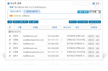 °³ÀÎ ÁÖ¼Ò·Ï »Ó¸¸ ¾Æ´Ï¶ó, ȸ»ç ³»¿¡¼ °ø¿ëÀ¸·Î »ç¿ëÇÒ ¼ö ÀÖ´Â Áּҷϵµ ÇÔ²² Á¦°øÇÕ´Ï´Ù. űװ¡ Áö¿øµÇ¹Ç·Î °°Àº ÁÖ¼Ò¸¦ ¿©·Á°³ÀÇ ºÐ·ù·Î °ü¸®ÇÒ ¼ö ÀÖÀ¸¸ç, ºü¸¥ Ãß°¡, ȸ»ç °øÀ¯ÁÖ¼Ò·Ï º¹»ç, °¡Á®¿À±â/³»º¸³»±â, ³» ¶óº§ ±â´É µîÀ» Á¦°øÇÕ´Ï´Ù. |