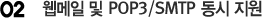 ÀÎÅͳÝÀÌ µÇ´Â °÷ÀÌ¸é ¾ðÁ¦ ¾îµð¼µç ¸ÞÀÏÀ» È®ÀÎÇÒ ¼ö ÀÖ½À´Ï´Ù. ¶ÇÇÑ POP3/SMTP ¼ºñ½º¸¦ ±âº»À¸·Î Áö¿øÇϹǷΠ¾Æ¿ô·è, ÀͽºÇÁ·¹½º µî ¸ÞÀÏ Å¬¶óÀÌ¾ðÆ®µµ º´ÇàÇØ¼ »ç¿ëÇÏ½Ç ¼ö ÀÖ¾î Æí¸®ÇÕ´Ï´Ù. Çʿ信 µû¶ó ȸ»ç¿¡¼´Â POP3·Î, ¿ÜºÎ¿¡¼´Â À¥¸ÞÀÏ·Î ¸ÞÀÏÀ» È®ÀÎÇÒ ¼ö ÀÖ½À´Ï´Ù. |